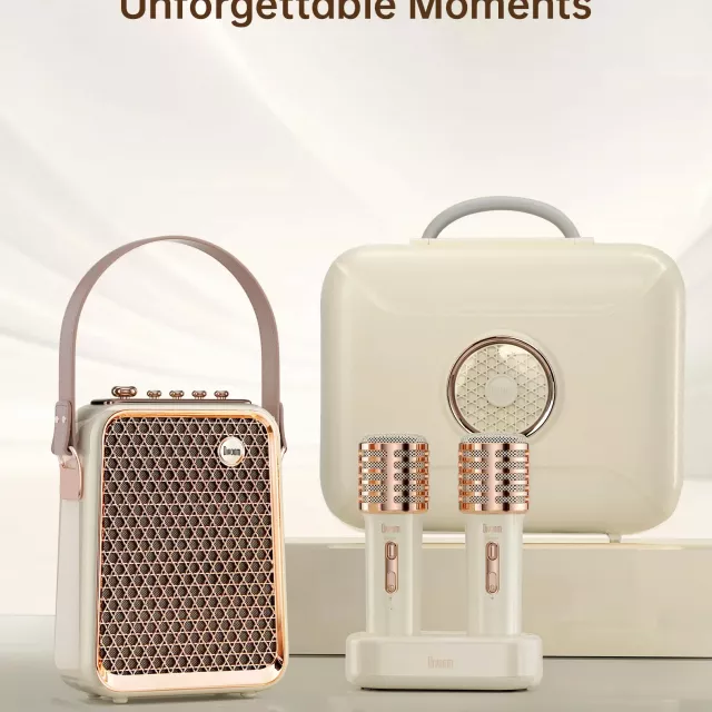 The docking base for the microphone adds an extra layer of convenience. No need to worry about changing batteries, just place the mic on the base, and it will charge effortlessly, ensuring you’re always ready to perform. With its sleek and stylish design, featuring a premium leather microphone handle, this product is both functional and luxurious. Whether you’re at home or on the go, the portable size makes it easy to bring the party with you anywhere you want to go.